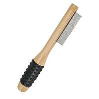 Dřevěný hřeben na blechy je profesionální nástroj pro péči o psy, navržený speciálně pro účinné odstraňování blech a jejich larev ze srsti. Je součástí nové řady dřevěných kartáčů, hřebenů, nůžek a nůžek Zolux, vyrobených z odolných materiálů, jako je bambus, bukové dřevo, kančí štětiny a nerezová ocel. Hřeben má ergonomickou protiskluzovou bambusovou rukojeť, která zajišťuje pohodlí a přesnost při používání a ocelové zuby účinně zachycují parazity, aniž by dráždily pokožku psa.