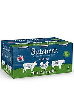 Naše receptura Tripe je přirozeně nabitá vysoce kvalitními bílkovinami, vápníkem pro silné kosti, vitamínem B12 a všemi důležitými Omega-3 a Omega-6 pro podporu imunitního systému a zdravou kůži a lesklou srst. Na rozdíl od jiných dršťků, které najdete, je naše zelená, protože pochází z dobytka krmeného trávou, takže si zachovává všechny své přirozené živiny. Protože je tento recept bez obilovin, je přirozeně bezlepkový, neobsahuje žádná zrna ani plniva. Tento recept na dršťky je původním receptem Butchera a pečlivě se vyrábí od roku 1987! Dršťky jsou přirozené super krmivo pro psy s chutí, kterou prostě milují!