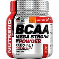 BCAA Mega Strong Powder je praktická forma instantního nápoje esenciálních větvených aminokyselin (BCAA) s regeneračním poměrem 4:1:1 (L-leucin, L-isoleucin, L-valin). Přípravek BCAA Mega Strong Powder je obohacen o L-glutamin, který přispívá k metabolismu svalových proteinů a zlepšuje metabolismus svalů. Dál podporuje znovuobnovení glykogenových zásob. Díky velmi dobré rozpustnosti ve vodě je zaručena okamžitá vstřebatelnost. Je určen pro intenzivně trénující sportovce, umožňuje rychlou regeneraci svalstva.