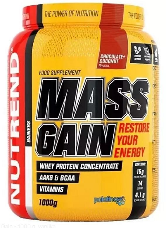Mass Gain gainer s obsahem 20 % bílkovin pro nastartování po zátěžové regenerace i podporu nárůstu svalové hmoty. Bílkovinná složka je tvořená 100 % WPC (syrovátkový proteinový koncentrát) a plnohodnotný sacharidový komplex zastupuje kombinace sacharidů - isomaltulóza (Palatinose), glukóza, maltodextrin a fruktóza. Je určen primárně pro budování svalové hmoty, zlepšení regenerace i jako zdroj energie před fyzickou aktivitou.
