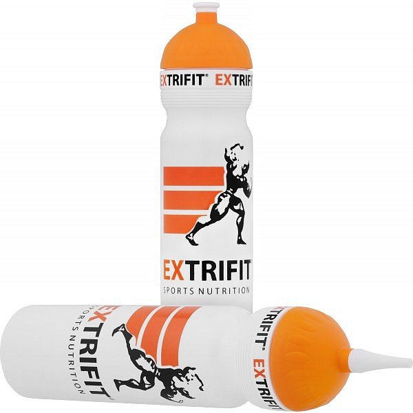 Sportovní láhev Extrifit o objemu 1000 ml, bílá, oranžové víčko.
