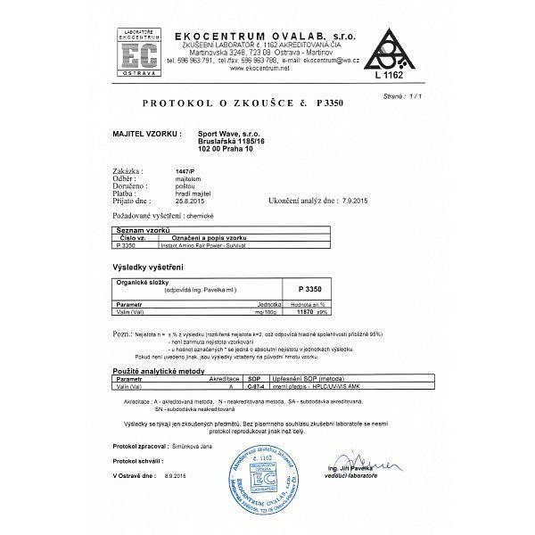 | celkem aminokyselin | 4810 mg | 5060 mg | 5000 mg |