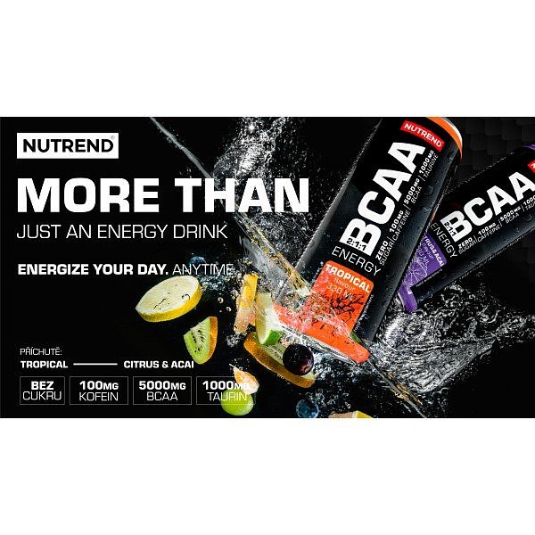 Drink BCAA Energy přináší osvěžení pro sport i volný čas. Sycený nápoj s vysokým obsahem esenciálních rozvětvených aminokyselin (BCAA) a kofeinu je zcela bez cukru. BCAA Energy oceníte zejména v situacích, kdy je potřeba se koncentrovat, jako například při řízení auta, nebo studiu, vhodný před i během aktivity. Drink je obohacený o směs vitamínů B3, B5, B6 a B12, které spolu s ostatními látkami přispívají ke snížení únavy, v osvěžujících příchutích.