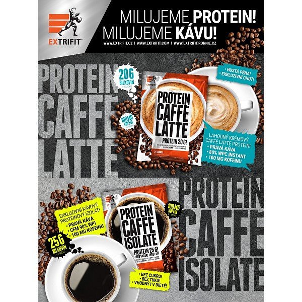 Protein Caffé Latte 80 je mimořádně lahodná proteinová káva od společnosti Extrifit. Pokud jste milovníkem lahodné kávy a současně sportovcem, pak je pro Vás Protein Caffé Latte 80 to pravé. Chuťově vynikající syrovátkový protein s obsahem plných 10 % pravé kávy a 100 mg kofeinu je bezvadný sportovní nápoj, který Vám dodá 20 g bílkovin v každé dávce a ještě si pochutnáte na skutečně lahodné napěněné kávě se stimulačním účinkem.
