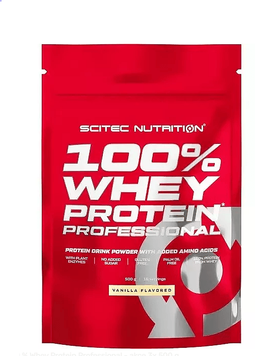 Whey Protein Professional od společnosti Scitec Nutrition obsahuje vysoký podíl kvalitních syrovátkových bílkovin získaných ultra-mikrofiltračním procesem, obohacených o trávicí enzymy papain (extrahovaný z papáji) a bromelain (z ananasovníku). Proteinová složka obsahuje cca 23 % aminokyselin BCAA (5 g v každé dávce) a 18 % L-glutaminu (4 g v dávce).