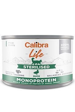 Calibra Cat Life Sterilised Duck – receptura konzervy s kachním, která je určena pro dospělé kočky, vhodná pro kočky po kastraci.