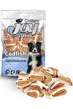 Sushi z tresky a kuřete Zdravý, voňavý a lehce stravitelný pamlsek, který skvěle obohatí jídelníček vašeho mazlíčka. Lahodná pochoutka z kuřecího masa a tresky je pro pejsky neodolatelným mixem chutí. Obsahuje nenasycené mastné kyseliny pro zdravou kůži a srst. Doplňkové krmivo pro psy.