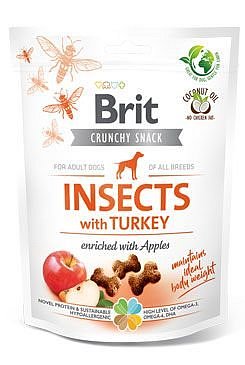 Funkční křupavé pamlsky s hmyzem a krůtím. Obohaceno o jablka.
