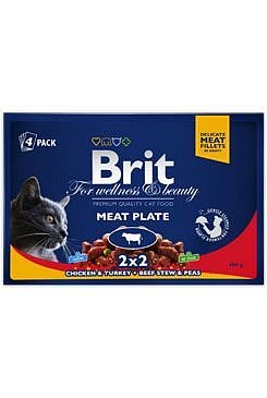 BRIT PREMIUM CAT POUCHES MEAT PLATE 400 g (4x100 g) - 2x krocan a kuře, 2x hovězí s hráškem. Kompletní prémiové kapsičky pro dospělé kočky.