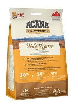 ACANA WILD PRAIRIE JE PLNÁ VOLNĚ CHOVANÝCH KUŘAT, KRŮT, CELÝCH VAJEC Z HNÍZDNÍCH CHOVŮ A VOLNĚ LOVENÝCH RYB, DODÁVANÝCH ČERSTVÉ NEBO SYROVÉ Z NAŠEHO REGIONU V PODÍLU CELÉ KOŘISTI, COŽ DODÁVÁ ŽIVINY PŘIROZENĚ, BEZ POTŘEBY DLOUHÉHO SEZNAMU UMĚLÝCH DOPLŇKŮ. S NÍZKÝM OBSAHEM SACHARIDŮ A VYSOKÝM OBSAHEM ŽIVOCIŠNÝCH PROTEINŮ PRO DOSAŽENÍ VRCHOLOVÉ KONDICE.