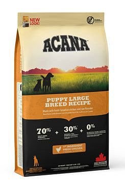 PŘIPRAVOVÁNO V NAŠICH OCEŇOVANÝCH KUCHYNÍCH V KANADĚ. ACANA PUPPY LARGE BREED PŘEKYPUJE VOLNĚ CHOVANÝMI KUŘATY, VEJCI Z HNÍZDNÍCH CHOVŮ, PLATÝSEM LOVENÝM VOLNĚ V PŘÍRODĚ A NA SLUNCI ZRAJÍCÍM OVOCEM A ZELENINOU – VŠE DODÁVÁNO ČERSTVÉ Z NAŠEHO REGIONU. ACANA ZARUČUJE, ŽE UDRŽÍ VAŠE ŠTĚNĚ SPOKOJENÉ, ZDRAVÉ A SILNÉ. PŘEČTĚTE SI NAŠE SLOŽENÍ A MYSLÍME, ŽE S NÁMI BUDETE SOUHLASIT.