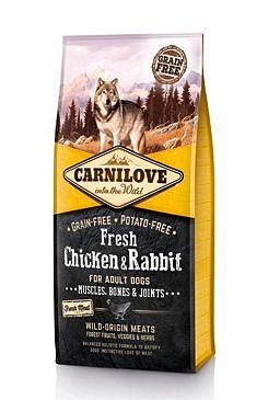 Carnilove Fresh Kuře & Králík superprémiové, holistické krmivo bez obilovin a brambor s čerstvým masem pro dospělé psy. Krmivo pro psy bylo navrženo s respektem k původní přirozenosti psů tak, aby jim poskytl vyváženou stravu bohatou na čerstvé maso v kombinaci s různými druhy zeleniny, ovoce a bylin.
