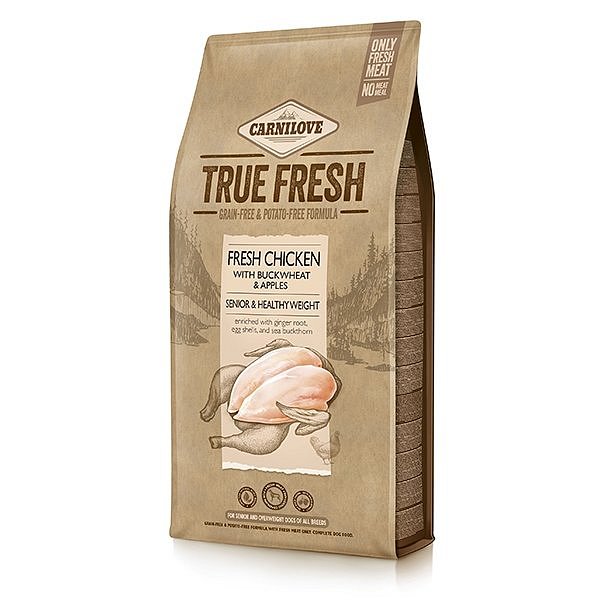Receptura krmiva pro psy Carnilove True Fresh Chicken Senior obsahuje vysoký podíl čerstvého kuřecího z farem a lokálních zdrojů. Maso pochází ze zvířat schválených pro lidskou spotřebu. Jablka jsou vynikajícím zdrojem vlákniny, která je nezbytná pro celkové zdraví trávicího traktu a optimální tělesnou hmotnost. Zázvor pomáhá budovat silnou přirozenou imunitu, zatímco rakytník a tymián poskytují potřebné antioxidanty, které chrání buňky před účinky stárnutí a také pomáhají udržovat správný metabolismus. Přidané vaječné skořápky obsahují minerály, které hrají důležitou roli při mineralizaci kostí.