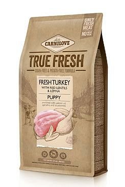 Receptura krmiva pro psy Carnilove True Fresh Turkey Puppy obsahuje vysoký podíl čerstvého krůtího z farem a lokálních zdrojů. Maso pochází ze zvířat schválených pro lidskou spotřebu. Lemna (okřehek) a lososový olej dodávají esenciální omega-3 mastné kyseliny, které zajišťují správný vývoj zraku a centrální nervové soustavy. Spirulina je bohatá na minerály a aminokyseliny, které hrají důležitou roli v metabolismu a posilují imunitu, celkové zdraví a pohodu. Přidaná červená čočka je vynikajícím zdrojem minerálních látek a vlákniny. Borůvky a rozmarýn dodávají potřebné antioxidanty, které pomáhají budovat imunitu štěněte a podporují normální růst buněk.