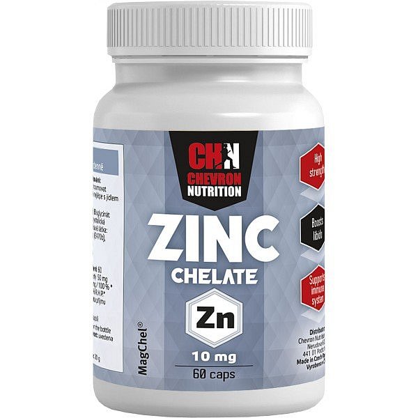 Zinc Chelate patří do řady vitamínových produktů od Chevron Nutrition. Je nabízen v jedné z nejčistších podob, zároveň je bez GMO, lepku a barviv. Zinek je nezbytná a nenahraditelná minerální látka pro naše zdraví. Sehrává mnoho úloh při činnosti našeho organismu a podílí se na procesu dělení buněk. Zinc Chelate obsahuje zinek ve vysoce využitelné chelátové vazbě bisglycinátu zinečnatého, což je nejlépe vstřebatelná forma minerálů pro lidské tělo. Zinek přispívá k normální funkci imunitního systému, zlepšuje mozkovou činnost, tělesný vývoj, přispívá k normální plodnosti a reprodukci.