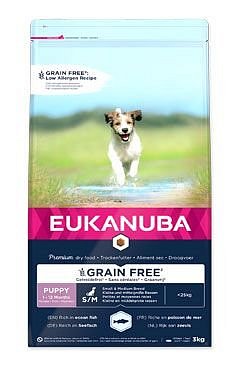 Eukanuba Grain Free* receptura pro štěňata malých a středních plemen s nízkým obsahem alergenů je pečlivě sestavená tak, aby krmivo neobsahovalo běžné alergeny. Šetrné složení granulí pro psy představuje alternativu pro psy se zvláštními nutričními požadavky, která obsahuje nezbytné vitamíny a minerály na podporu zdravého růstu a vývoje.