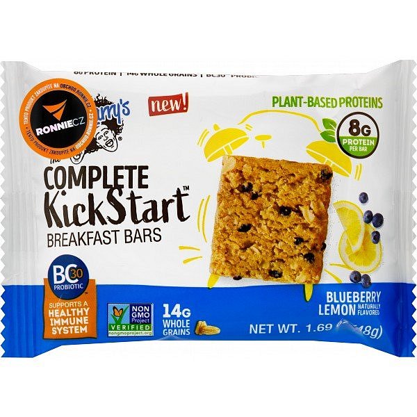 Měli jste někdy ráno pocit, že potřebujete skvěle vyladěné jídlo pro ideální start Vašeho dne? V tu chvíli přichází na řadu Complete Kickstart od Lenny & Larry’s. Je nabitý všemi dobrými věcmi, které potřebujete, abyste svůj den začali tím správným směrem. Dokonale jemná a měkká snídaňová cereální tyčinka navržená tak, aby nastartovala Váš den s 8 g rostlinných bílkovin, BC30 probiotiky, 4 g prebiotické vlákniny a 14 g celozrnných potravin, které Vás posunou kupředu. Tyčinky jsou k dispozici ve dvou lahodných příchutích – jablko-skořice a borůvka-citron. Vhodné pro vegany.