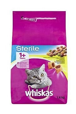 Kompletní, suché krmivo pro dospělé sterilizované nebo kastrované kočky s kuřecím masem. Krmivo Whiskas patří mezi krmiva, které by si Vaše kočičky instinktivně vybraly. Naše receptura je pečlivě připravena z kvalitních ingrediencí, které nejen výborně chutnají, ale zároveň jsou i nutričně vyvážené. Protože kočky nemají rády pouze jednu příchuť každý den, snažíme se, aby krmivo Whiskas nabízelo skutečnou rozmanitost, kterou kočky hledají. Granule obsahují mnoho užitečných ingrediencí s velkou škálou prospěšných funkcí: