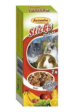 Doplňkové krmivo pro králíky, morčata a další hlodavce. Tyčinky s ovocem jsou výbornou pochoutkou, ale také krmivem, které Vašemu mazlíčkovi dodává důležité vitamíny a minerály pro zdravý a vitální život. Tyčinky jsou speciální krmivo, kde musí Váš mazlíček vyvinout úsilí k získání své potravy podobně jako v přirozeném prostředí. To napomáhá jeho fyzické a psychické kondici.
