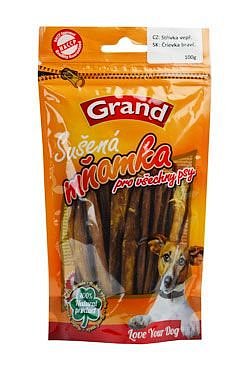 Sušené doplňkové krmivo GRAND střívka slouží jako lahodný pamlsek, který příznivě působí na střevní mikroflóru Vašich miláčků. Krmivo se vyrábí z čerstvých surovin na přírodní bázi (sušení), bez chemických přísad. Kvalitním sušením jsou minerály a vitamíny v krmivu zachovány. Sušené doplňky slouží současně jako pamlsky a odměny, čistí chrup, posilují žvýkací svaly, vyrovnává hladinu žaludečních šťáv a příznivě působí na střevní flóru.