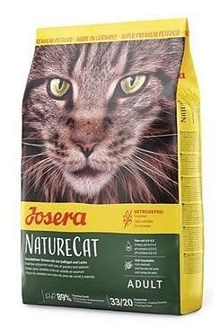 Krmivo Josera Nature Cat neobsahuje žádné obiloviny a je proto vhodné i pro nutričně citlivé kočky a koťata od 6. měsíců věku. Extra porce drůbežího masa (29%) a maso z lososa (10%) dodají organismu dostatečné množství kvalitních bílkovin. Výjimečnou chuť dodají krmivu vybrané bylinky, ovoce a zelenina. Zajistí nejen vítanou změnu v kočičím jídelníčku, ale také přísun důležitých živin. Kromě máty peprné a petrželky obohacují recepturu také arónie, borůvky, šípek a další rostlinné výtažky. Optimální poměr vápníku a fosforu a snížený obsah magnézia napomáhají regulaci pH hodnoty moči (6,0 – 6,5). Tím krmivo napomáhá redukovat tvorbu močových kamenů, což je u koček častý zdravotní problém. Křupavé granule navíc obsahují vlákninu, která napomáhá vylučování smotků chlupů. Krmivo Josera Nature Cat je obohaceno o celou řadu vitamínů, minerálních látek a stopových prvků, které přispívají ke správné funkci orgánů a podporují dobrou kondici organismu. Taurin, což je látka pro kočky zcela nezbytná, posiluje srdeční sval a zrak. Kompletní přírodní krmivo bez umělých přísad prémiové německé značky Josera, jejímž prvořadým cílem je vysoká kvalita nabízených krmiv.