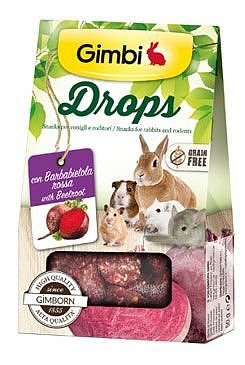 Gimbi Grain free dropsy pro hlodavce s červenou řepou jsou vyrobeny z těch nejkvalitnějších surovin. Při jejich výrobě není použito žádných obilovin, barviv a dochucovadel. Díky tomu jsou vhodné p ro všechny druhy hlodavců a králíků, včetně těch, kteří mohou trpět problémy s trávením. Mají skvělou chuť a svou pevnou konzistencí pomáhají hlodavcům obrušovat jejich zuby.