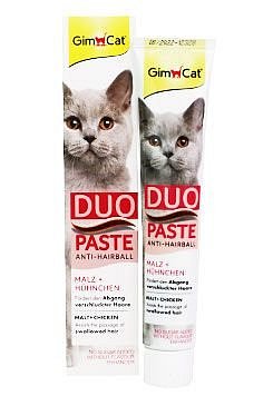 Maltózová pasta GimCat Anti-Hairball Duo slouží jako odměna, která má blahodárné účinky na vaši kočku.