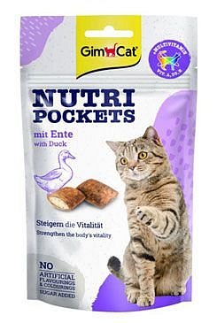 Doplňkové krmivo pro kočky Gimcat nutri pocket kachna jsou křupavé kapsičky s lahodnou náplní. Odrůda kachna obsahuje vitamíny A, D3 a E. Společně aktivují obranyschopnost organismu a posilují vitalitu.