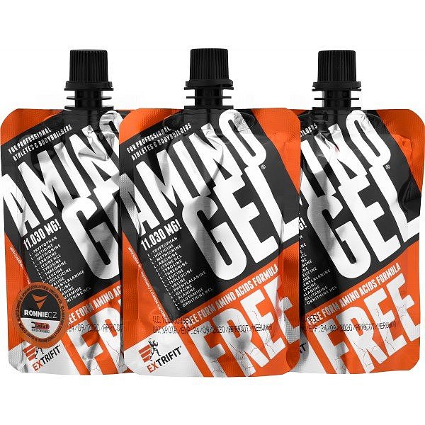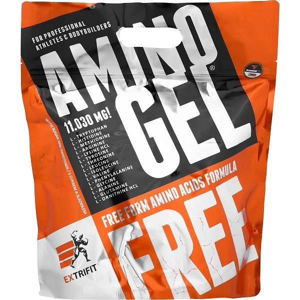 Aminogel je světová novinka na trhu aminokyselin od firmy Extrifit. Jedná se o unikátní aminokyselinový produkt, který v jednom balení chutného gelu obsahuje velmi silnou dávku 11030 mg výhradně volných aminokyselin. Gelová forma zajišťuje ideální stravitelnost a vstřebatelnost a pečlivě vyvážený poměr volných aminokyselin pro maximální anabolický, regenerační a antikatabolický účinek. Žádná pojiva jako v tabletách, žádné slisované proteiny, tento produkt obsahuje výhradně ty nejkvalitnější volné aminokyseliny ve formě gelu, a to ve čtyřech skvělých příchutích.