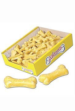 Doplňkové krmivo pro psy. Bonbony pro psy s vanilkovou příchutí ve tvaru kostiček.