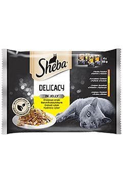 Sheba Delicato je kompletní a rozmanité krmivo pro dospělé kočky, které je vytvořené a připravené s ohledem na kočičí touhy. Jemně kousky masa jsou připravené speciálním způsobem aby maso bylo zdravé a podpořilo co největší požitek z jídla. Kapsička je chuťově bohatá, šťavnatá a lákavě voňavá. Receptura poskytuje kočce kompletní dávku potravy, neboť obsahuje všechny důležité živiny pro její zdravý život. Krmivo obsahuje všechny důležité výživné látky, minerální látky a vitamíny v optimálních poměrech pro splnění nutričních požadavků kočičího organismu od jednoho roku.