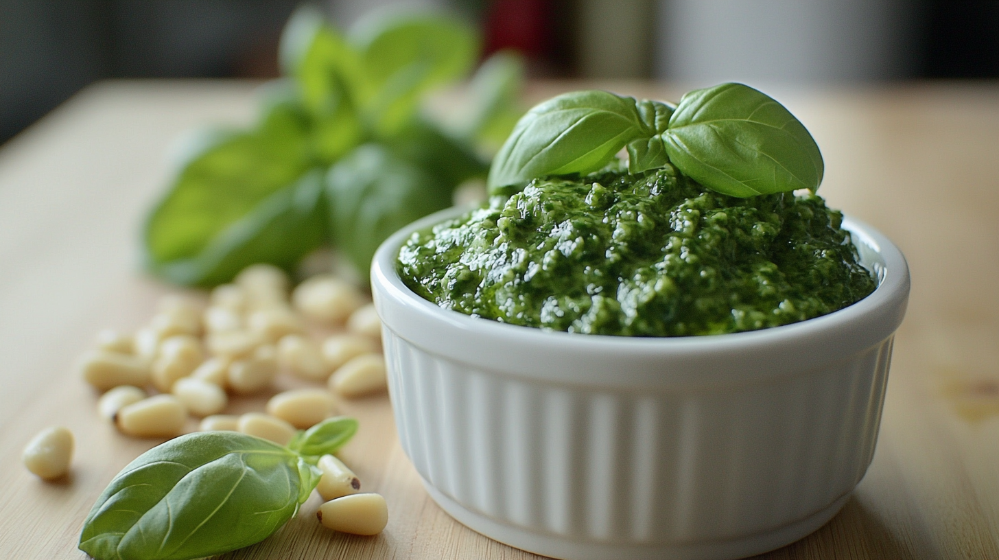 Potřebujete čerstvou bazalku, která dodá pestu jeho krásnou zelenou barvu a svěží vůni. Na kvalitu listů bazalky je třeba klást velký důraz – čím čerstvější a mladší, tím lépe. K tomu přidáme česnek, jehož síla a intenzita závisí na vaší osobní preferenci. Pak přichází na řadu piniové oříšky. Při jejich pražení na suché pánvi se celá kuchyň naplní jejich delikátní vůní, která vás okamžitě přenese do středomořského ráje.